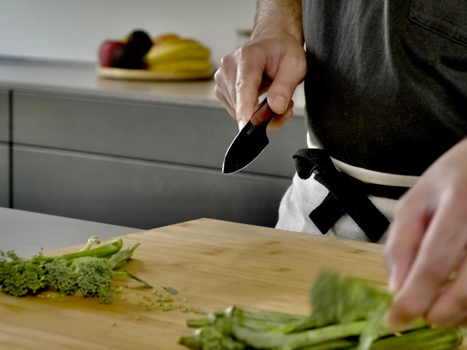 This compact, minimalist design 5.3 inch utility knife steps in when you just want to make a fruit bowl, a salad or cheese plate. It makes casual slicing effortlessly sleek and playful. A capable tool for those in-between tasks admired by SideChef and Reviewed.com for its slick look and deft cuts.