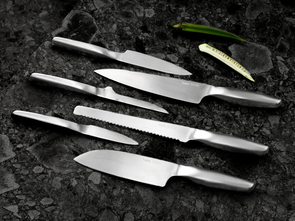By removing details that's not essential to modern cooking, Hast knives have a very simple and clean profile that transforms your slicing, dicing and make cutting and prepping a critical phase to express your cooking creativity.