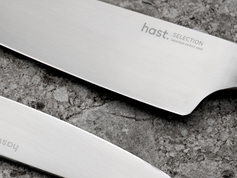 Hast Selection series knives are made of premium Japanse carbon steel by renowned steel maker Koike. It's ultra-hard yet strong and stable, thanks to its unique composition combined with state of art precision manufacturing. Unlike other premium knives, Hast Selection knives are versital, easy to maintain, and unstressful to use.